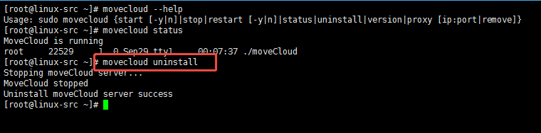 2 | 卸载movecloud | 执行movecloud uninstall即可完成卸载。 |