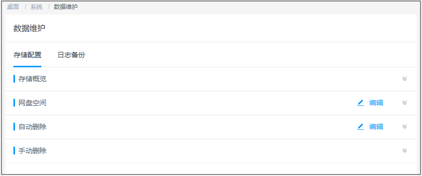 2 选择“系统 > 数据维护 > 存储配置”,进入系统存储配置管理页面。