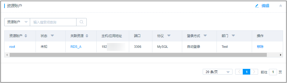- 在“资源账户”区域,单击“编辑”,弹出关联资源账户窗口,可立即添加或移除关联的资源账户。