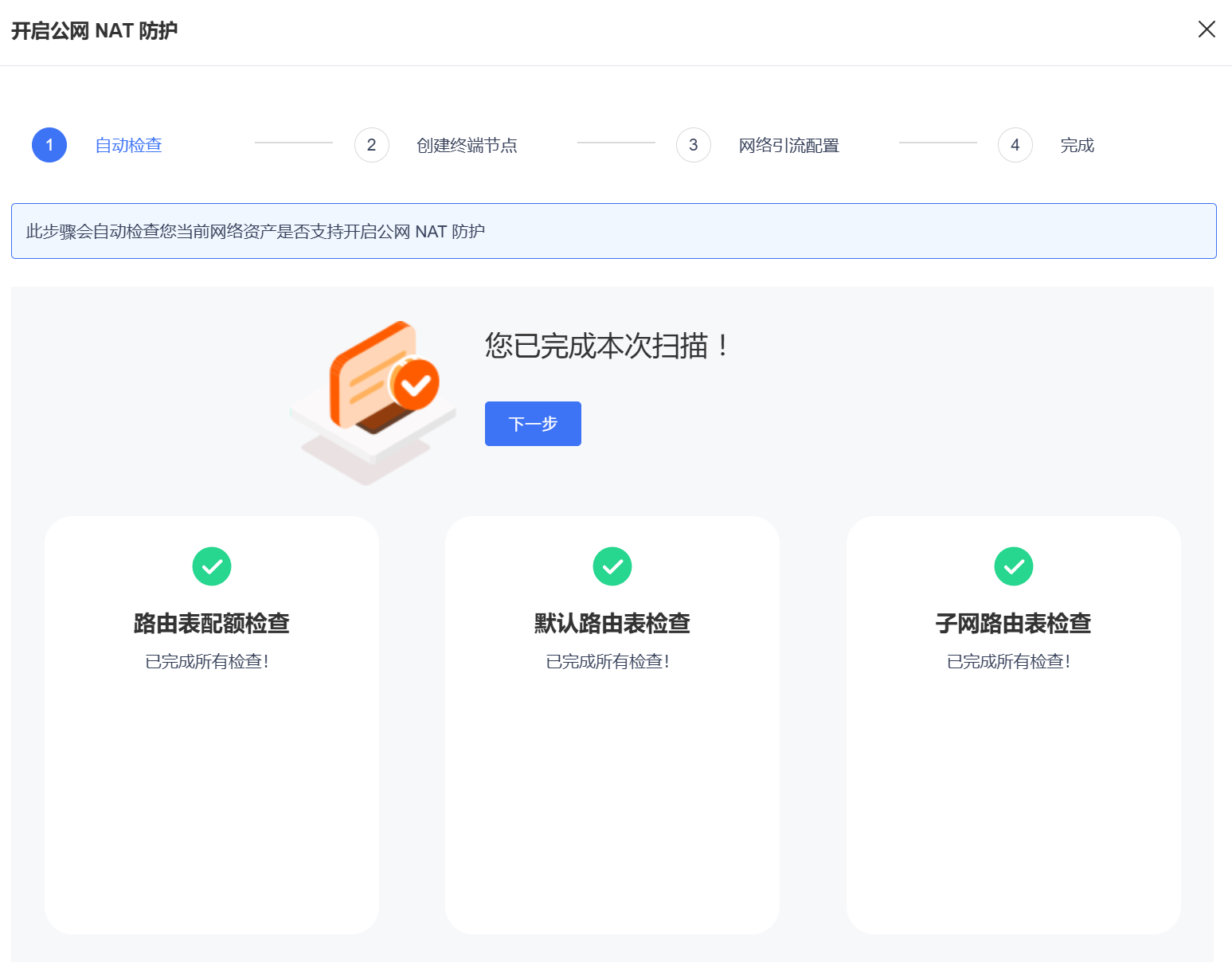 若有未检查通过的项,请根据提示信息完成相应操作后,再执行下一步。