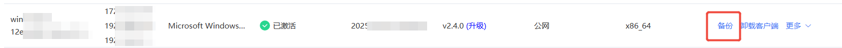 方法2:在ECS资源/客户端资源页面创建备份计划