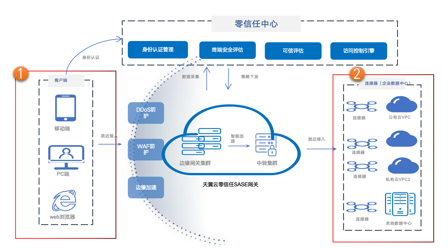 零信任中心:天翼云部署管理。