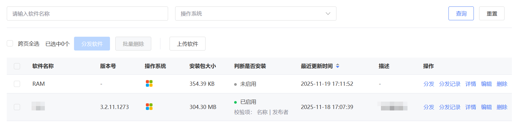 软件分发能力用于统一管理企业员工安装的软件,确保终端获取正确合规的软件。
