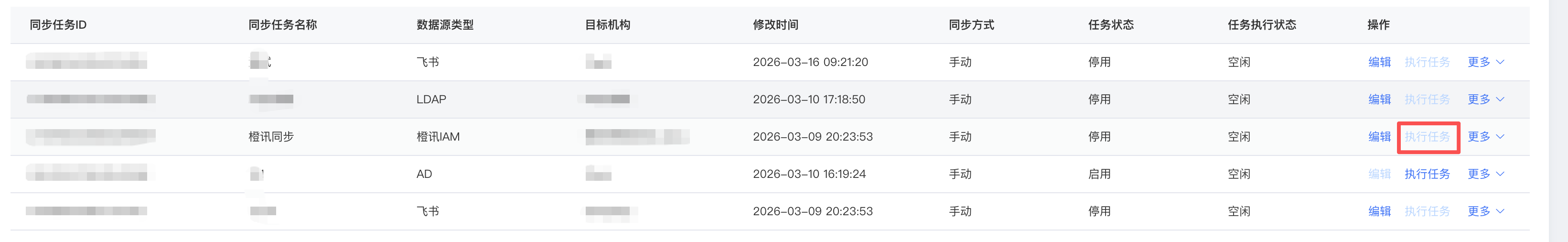 当同步方式为手动时,可通过“执行任务”按钮立即执行同步任务。
