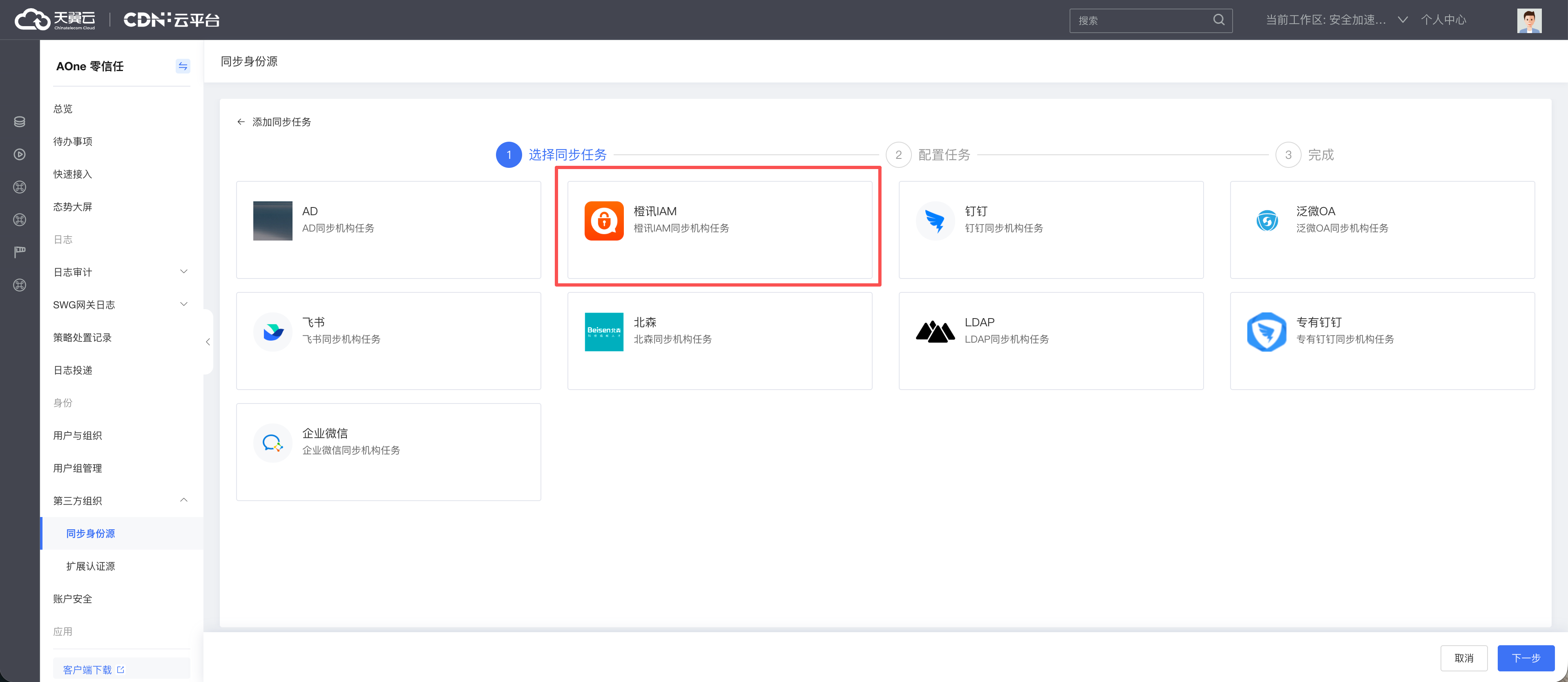 进入同步身份源列表,点击“添加同步任务”,进行橙讯同步源添加。