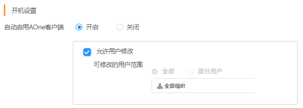 全部:组织内所有用户均有权限修改自身设备的自动启动设置。