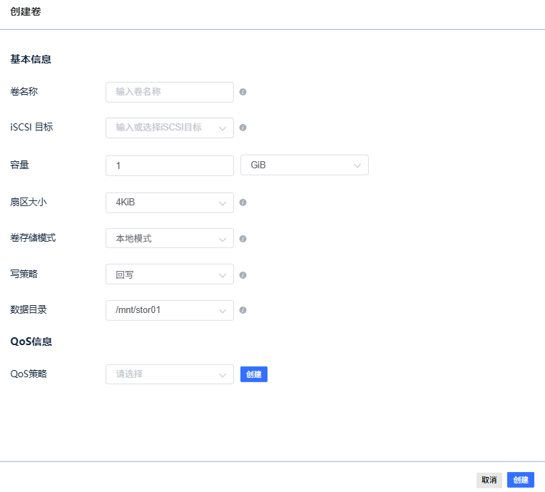 可以选择已存在的QoS策略,也可以点击“创建”按钮创建新的QoS策略,详见创建QoS策略。