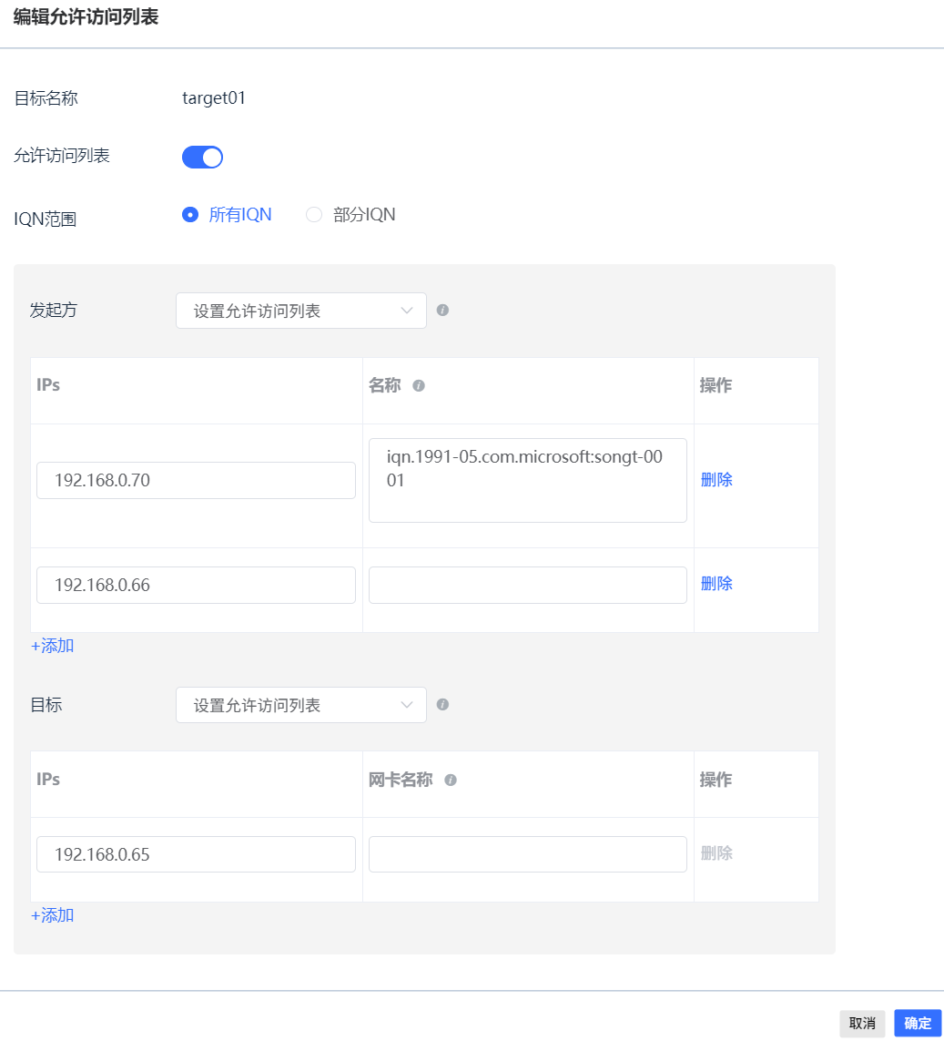 | IQN范围 | 编辑允许访问列表的IQN范围: