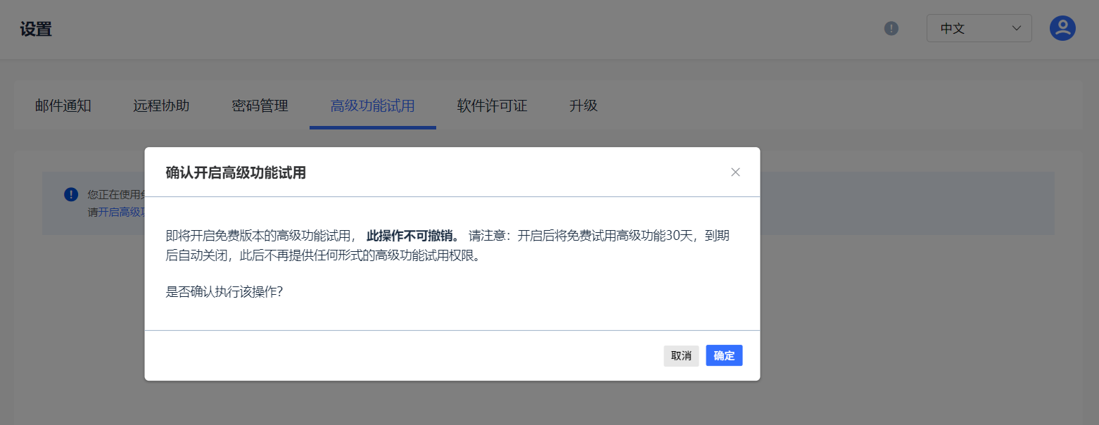 图1 开启高级功能试用