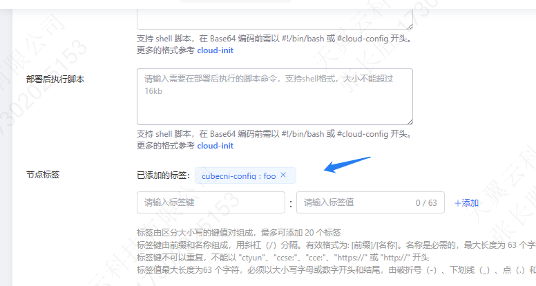 创建节点池时添加节点标签,键设置为cubecni-config,值设置为foo。新建节点池,详见节点池管理。