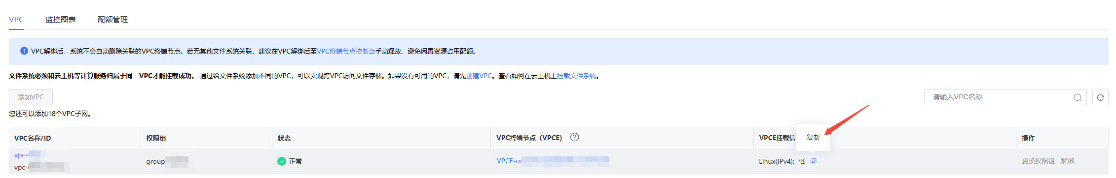 已创建同VPC下的NFS协议文件系统,具体操作步骤参见创建文件系统。