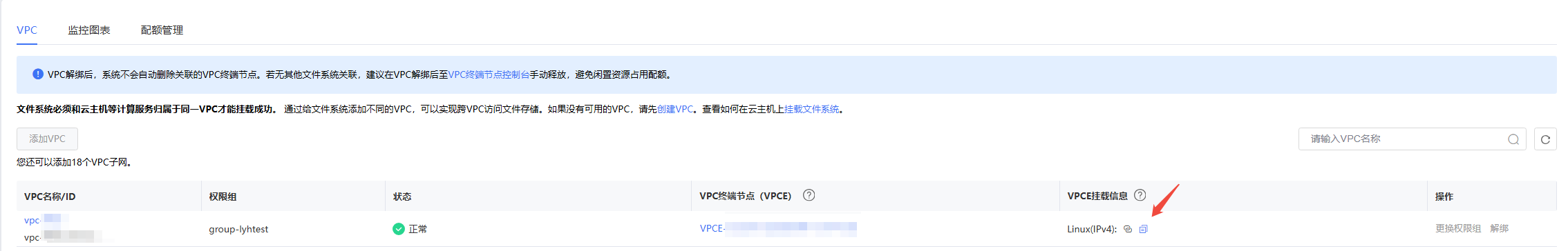 mkdir /mnt/sfs在文件系统详情页面复制挂载命令,并在客户端执行挂载。挂载命令获取见下图,参数说明参考挂载NFS文件系统到弹性云主机 (Linux) 。