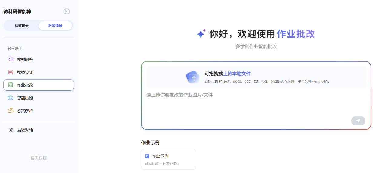 功能说明: 智能批改用户上传的题目,自动标记错题并生成修改建议。