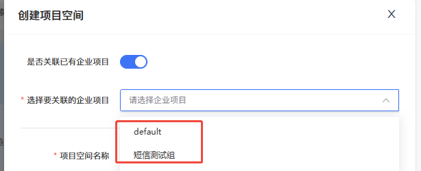 如您选择了关联企业项目,默认填充值为企业项目名称