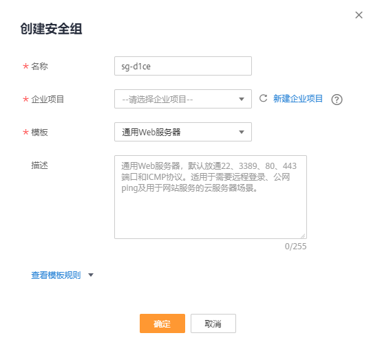 - 填写安全组名称等信息。