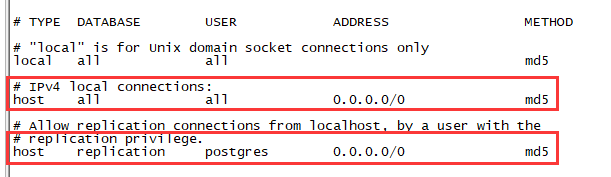 - 将DTS的IP地址加入至其他云PostgreSQL的配置文件pg_hba.conf中。如果您已将信任地址配置为0.0.0.0/0(如下图所示),可跳过本步骤。