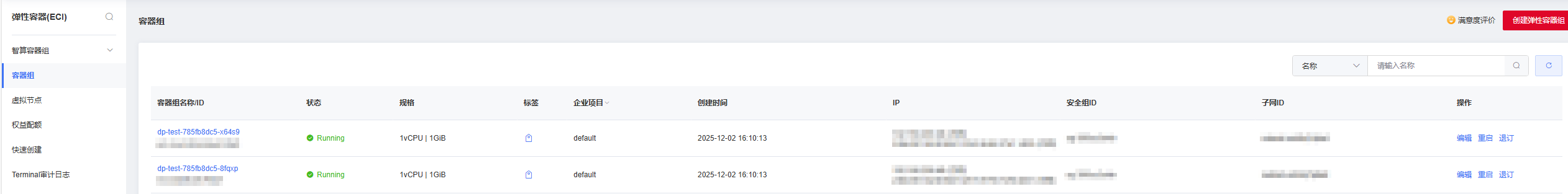 创建成功后,Pod正常running状态,可在节点->节点进入虚拟节点详情页,查看Pod状态: