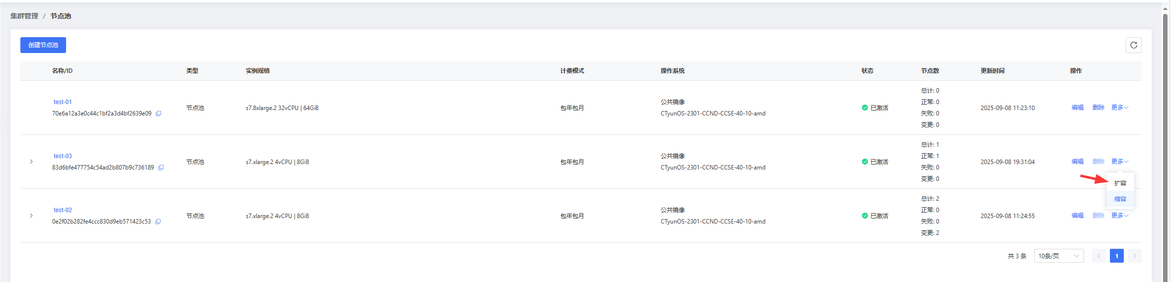 节点管理:展示节点池内所有节点,支持对节点进行退订、移除操作;