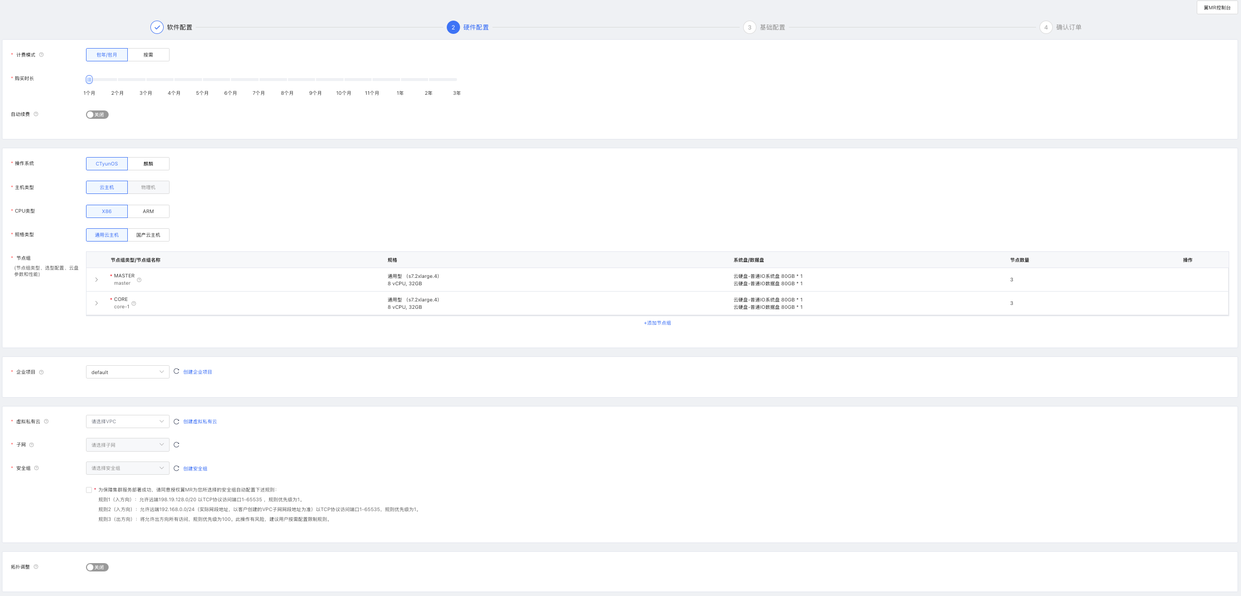 基础配置填写完成后,点击右下角“下一步”按钮,进入确认订单页面。配置清单说明如下: