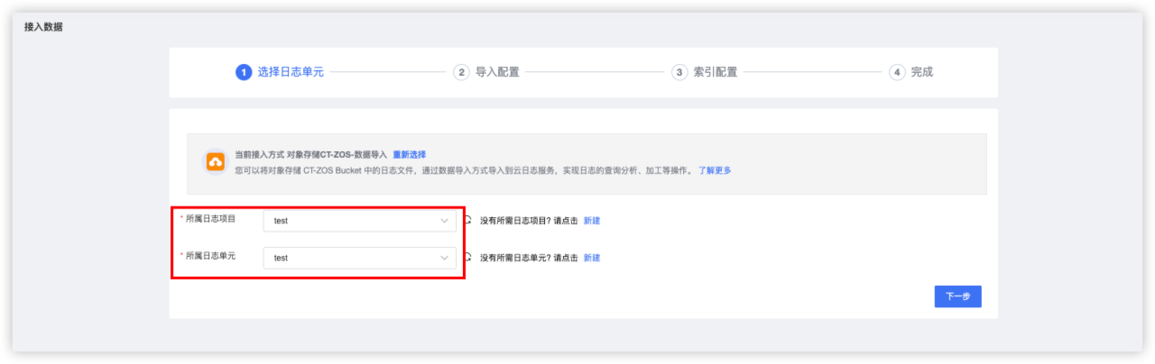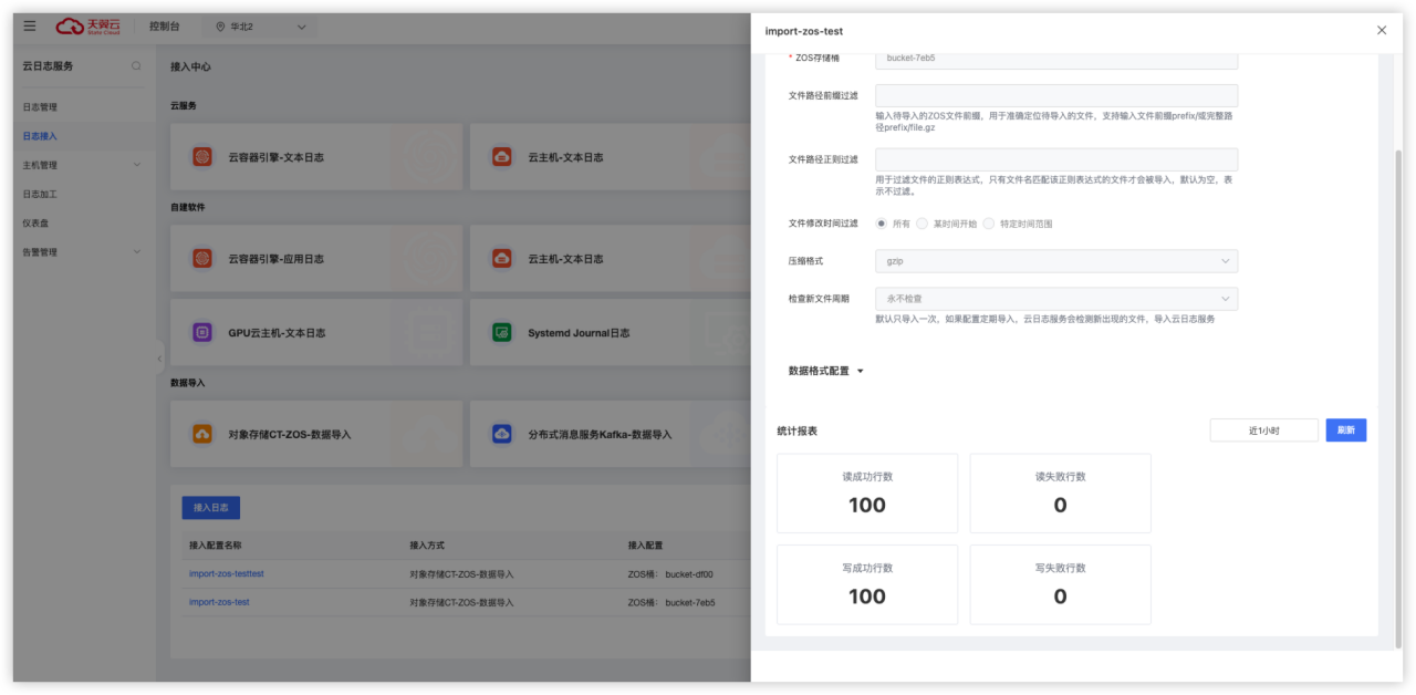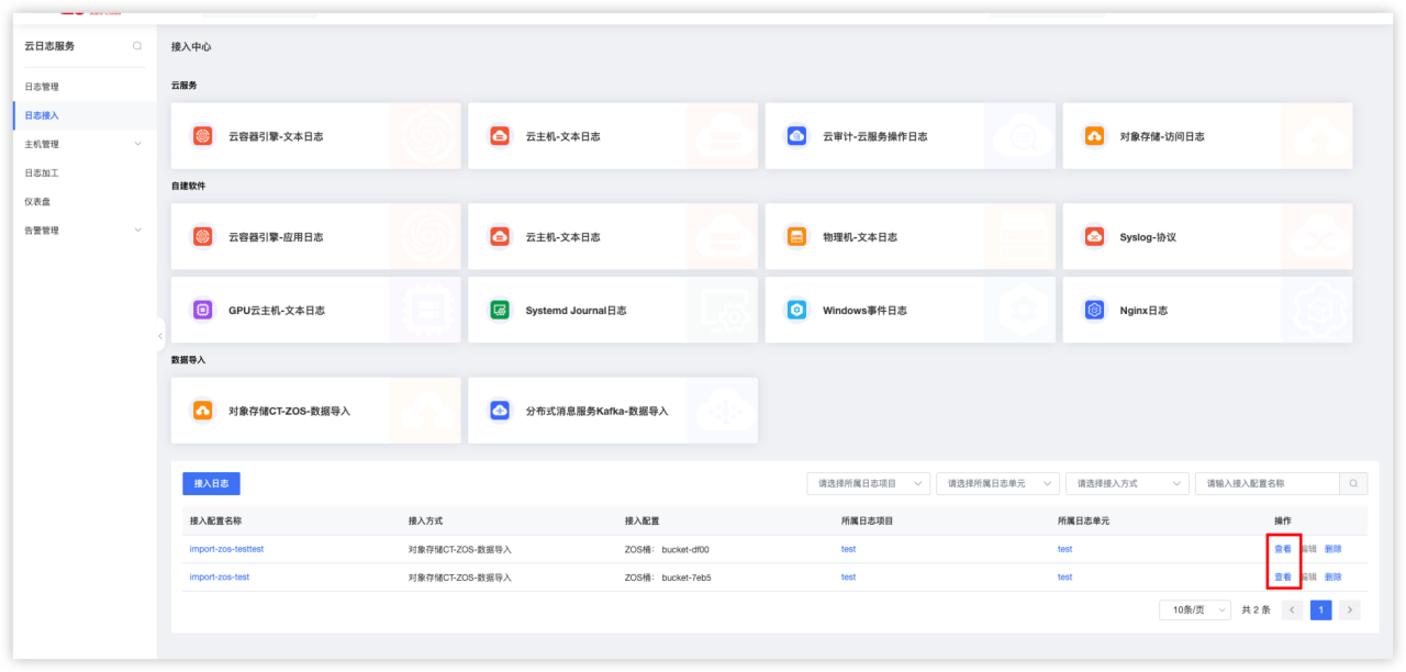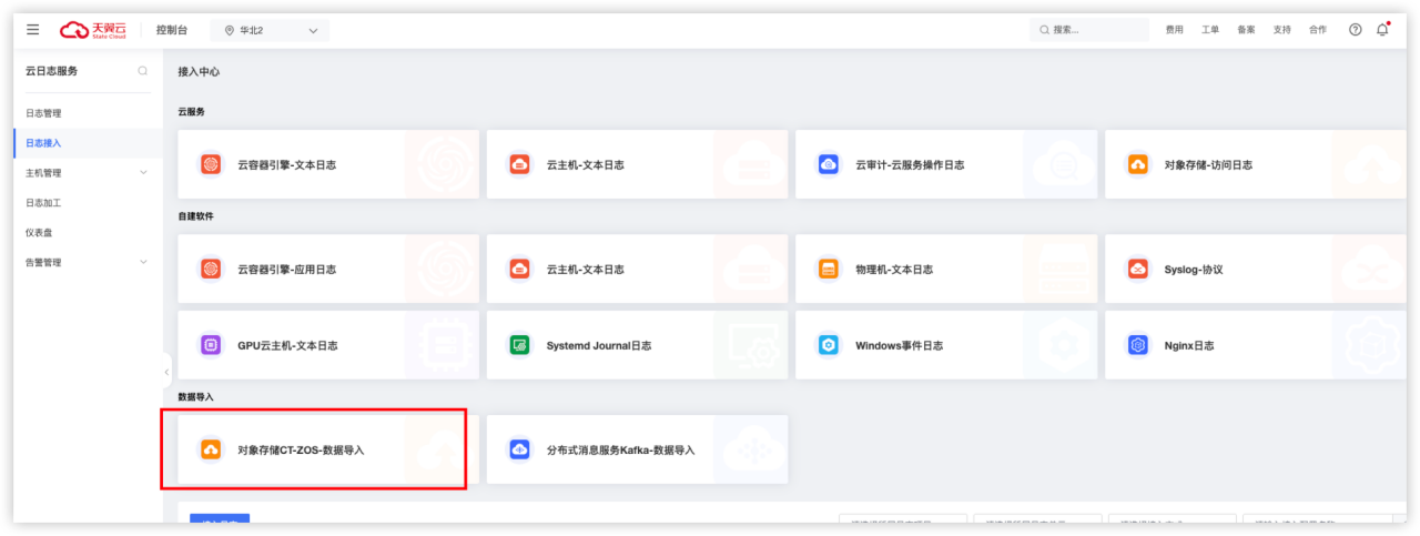 点击左侧“日志接入”惨淡,选择对象存储导入。