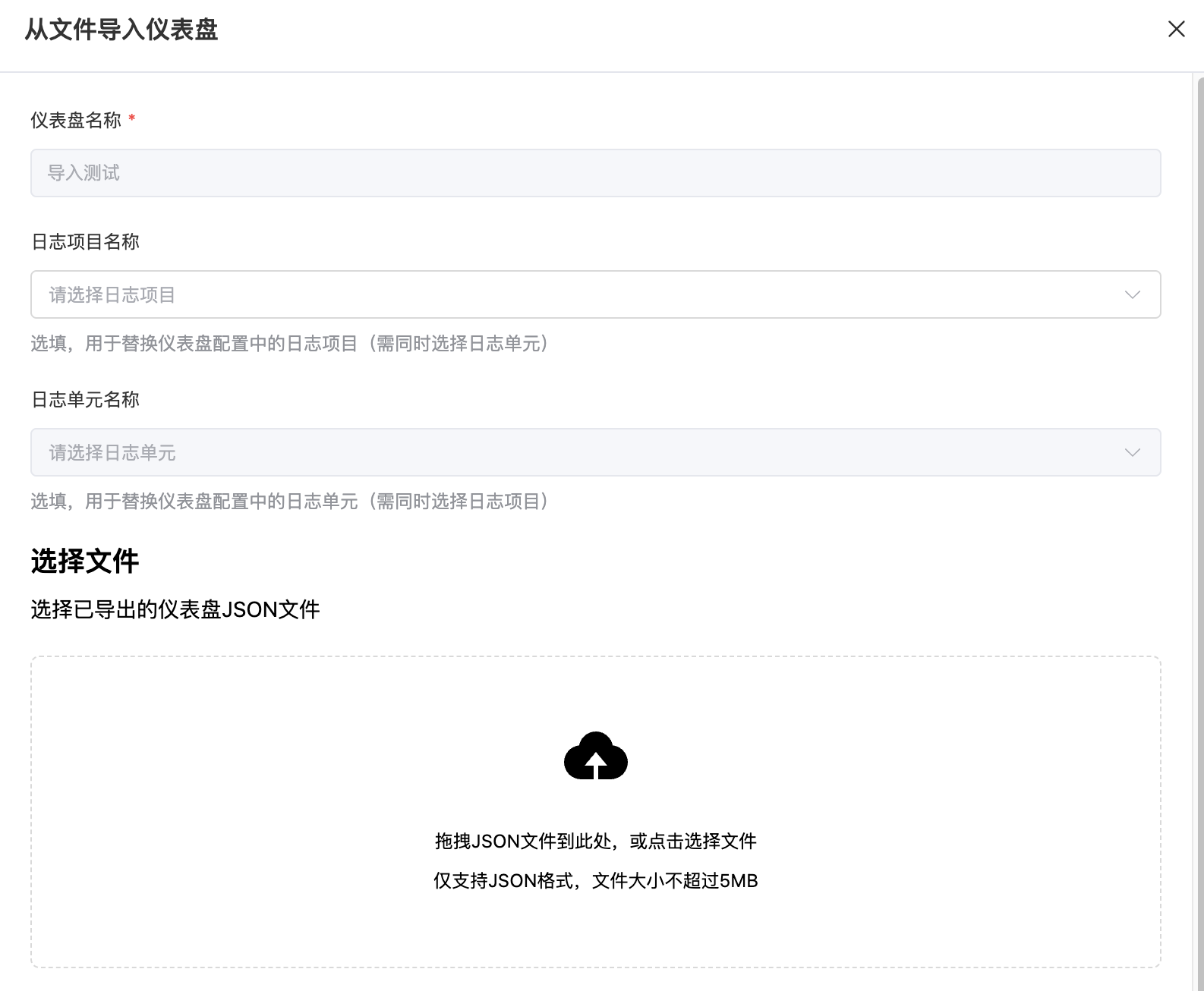 根据界面引导,选择日志项目与日志单元,用于替换源仪表盘中的日志项目与日志单元。