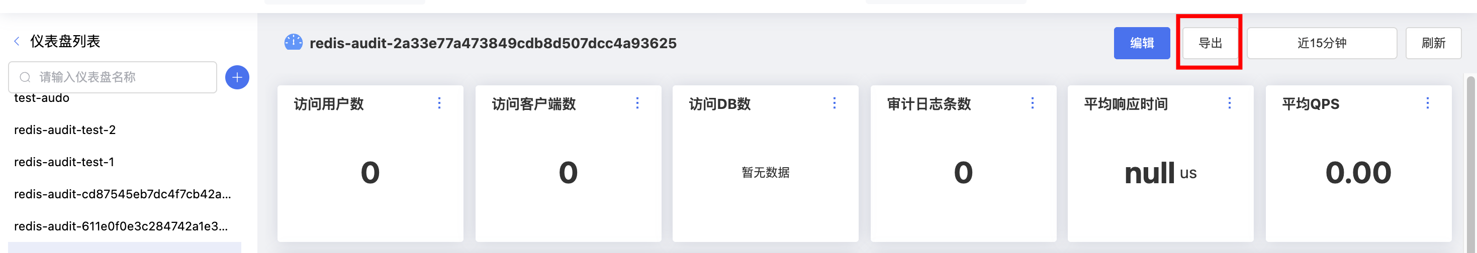 进入目标仪表盘页面,点击右上角导出按钮。系统将自动以JSON文件格式导出当前仪表盘至本地。