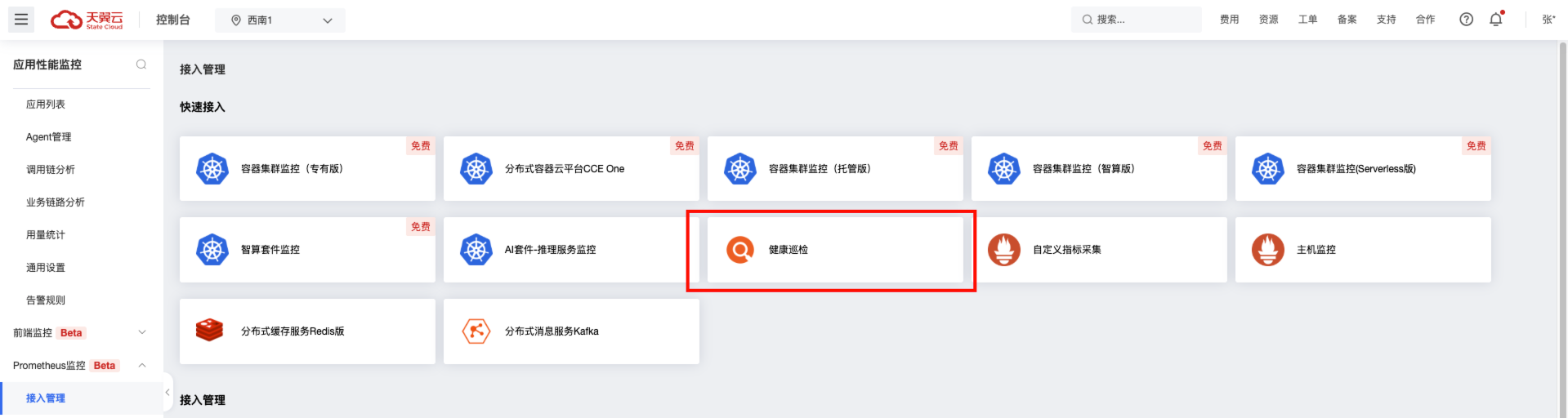 完成健康巡检接入后,您可以监控大盘查看巡检情况。