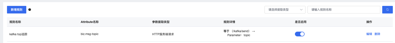 在业务参数提取规则区域,您可以创建、查看和修改当前应用的业务参数提取规则。