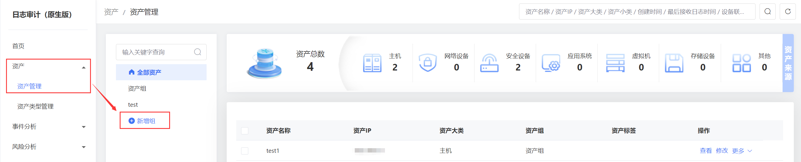 选择需要新增资产的资产组,进入资产组页面后,单击“新增资产”。