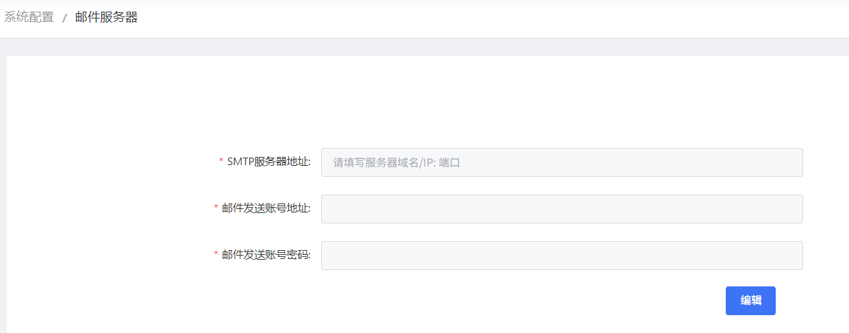 在左侧导航栏选择“系统配置 > 邮件服务器”,进入邮件服务器页面。