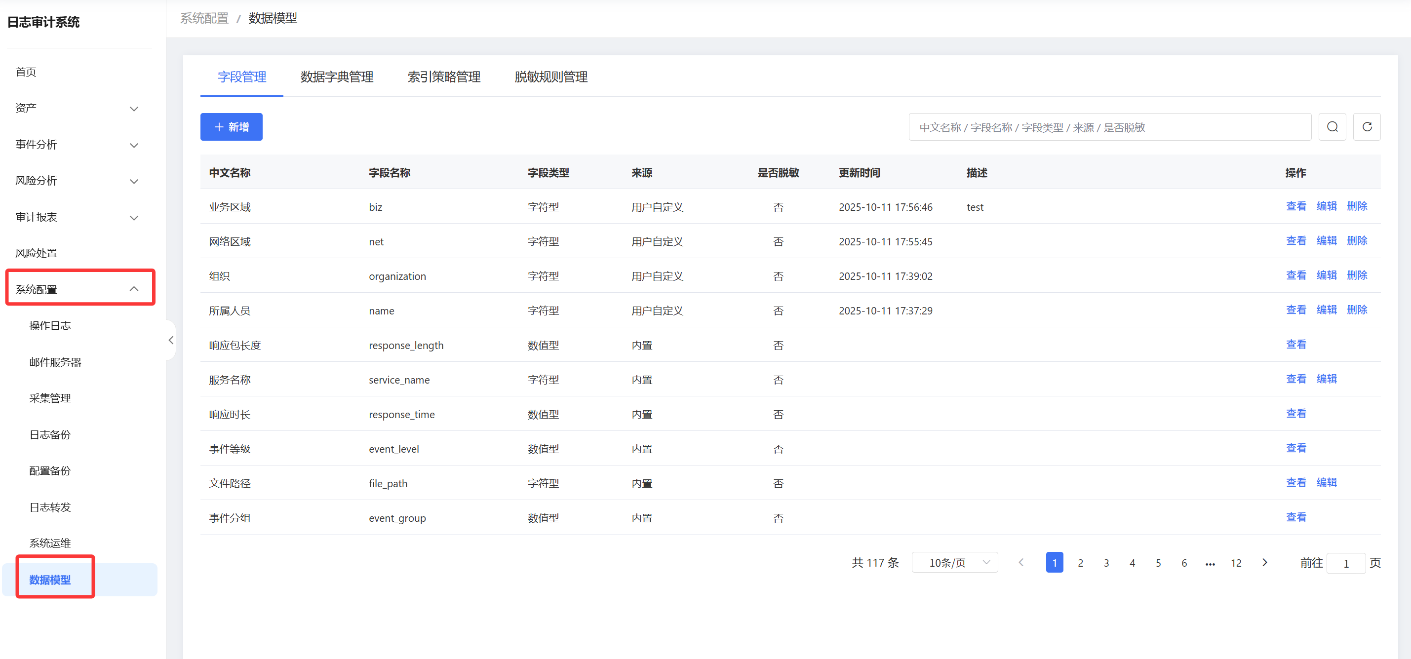 字段管理:对日志审计系统中日志记录的各数据字段进行定义、配置和维护的过程