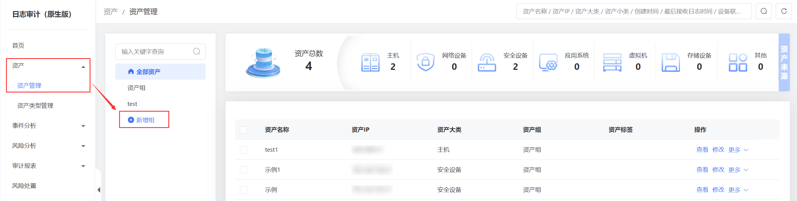 本章节为您介绍日志审计(原生版)资产组的相关操作。