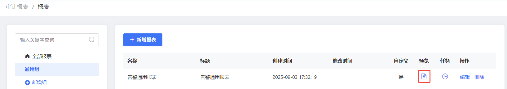 在左侧导航栏选择“审计报表 > 报表”,进入“报表”页面。