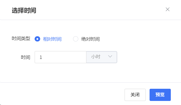 相对时间:可选择分钟、小时、天、月为单位,以展示所选时间到当前的数据。