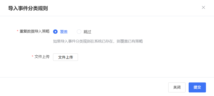 跳过:如果导入解析规则系统已经存在,则保留原有策略,不进行导入。