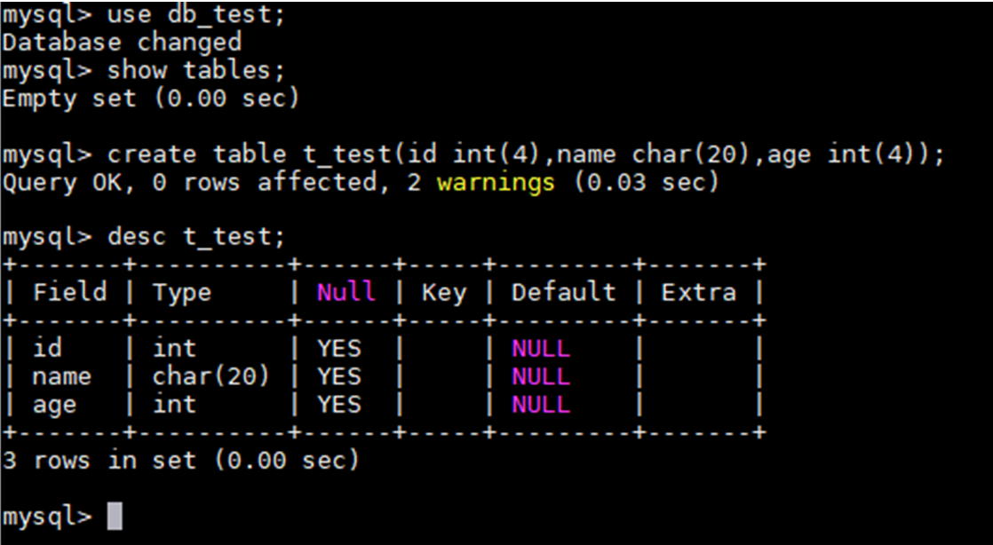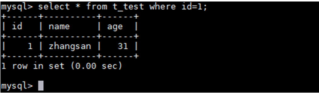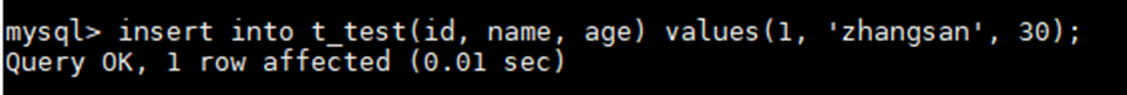insert into t_test(id, name, age) values(1, 'zhangsan', 30);