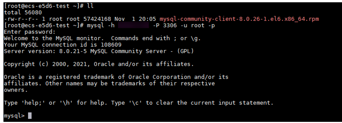 TaurusDB实例购买完成后,可以先登录到Linux弹性云主机,在ECS上安装MySQL客户端,然后执行MySQL命令行通过内网连接到实例。本章节向您展示如何使用标准MySQL客户端从ECS访问TaurusDB实例。