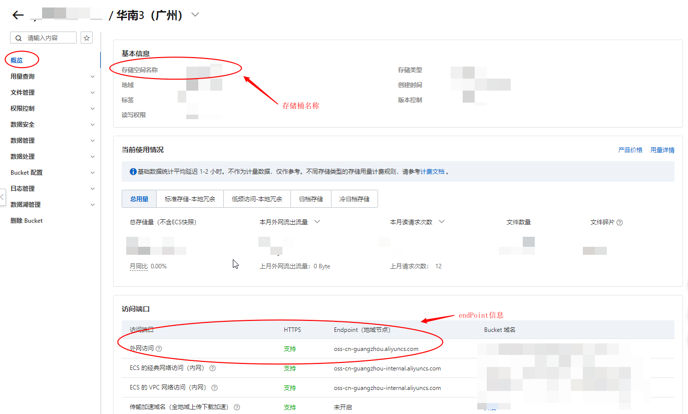 - 记录需要迁移的桶名以及EndPoint信息,具体获取如下图: