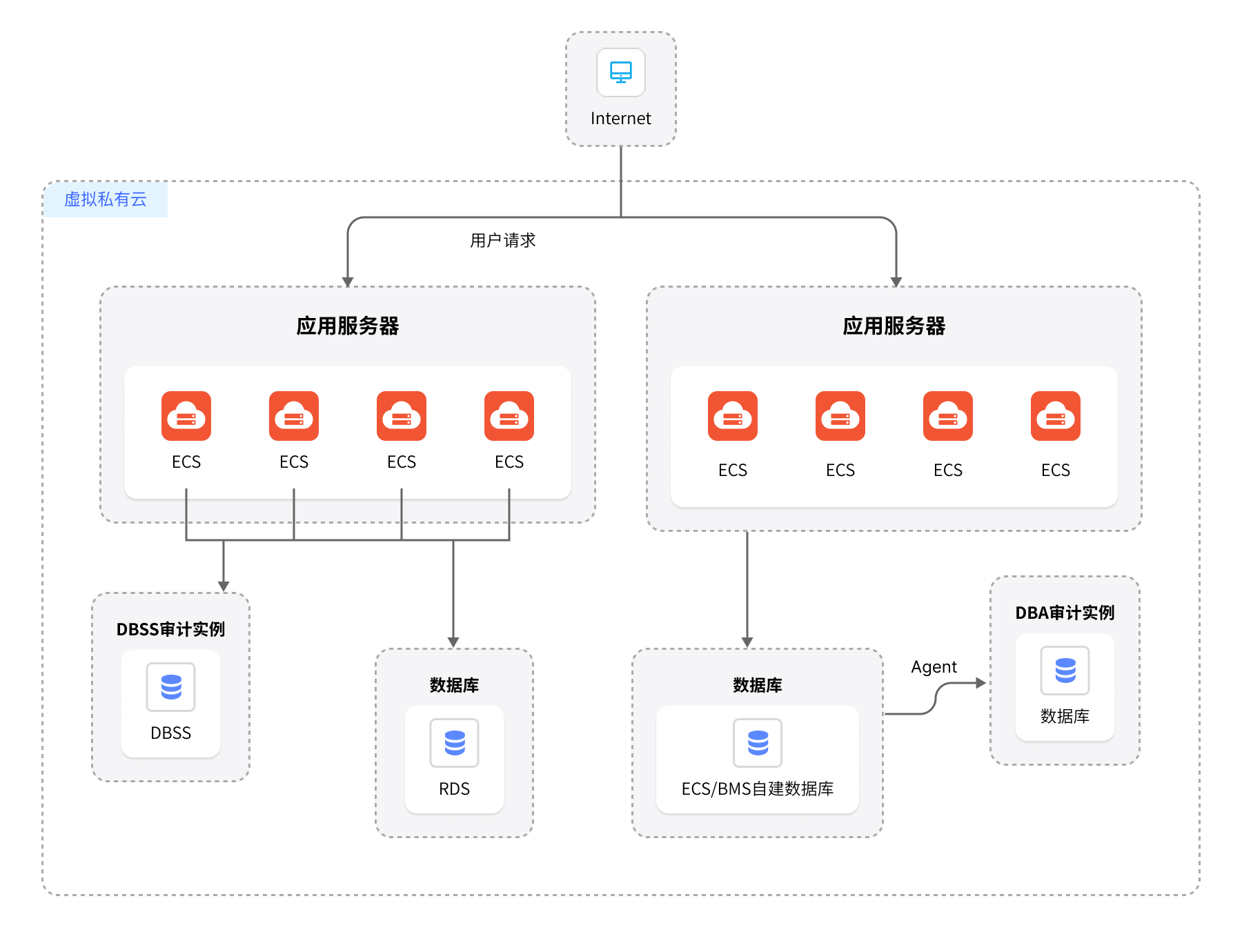 天翼云数据库审计从产品部署架构可以自下而上分为数据采集、协议解析、风险识别、数据存储四个部分,在管理控制侧分成日志查询、仪表盘与报表、数据开发和分布式统一管理。