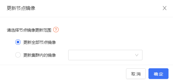 - 选择更新范围:支持更新全部节点镜像、更新集群内的镜像两种更新方式。