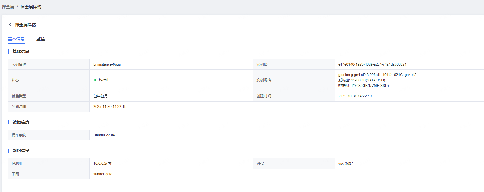 填写裸金属创建的必要参数。创建裸金属参数说明: