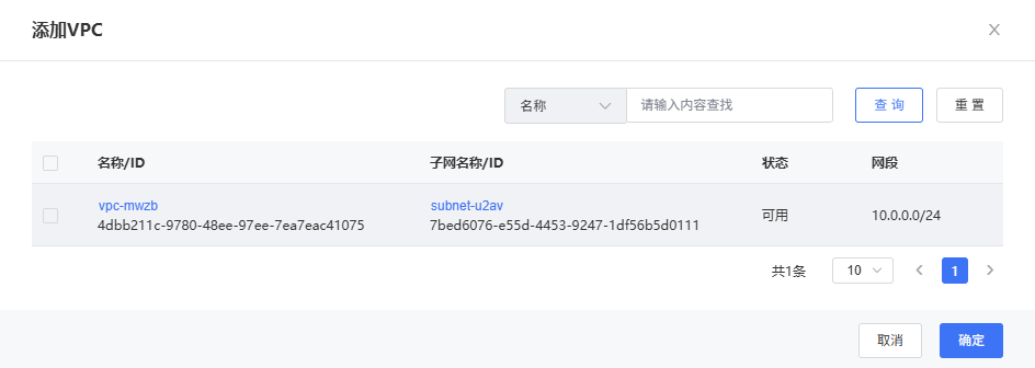 弹窗列表中会展示各VPC子网信息(没有子网的VPC不会展示),用户可以选择需要绑定的子网,支持查询,支持单选与多选。