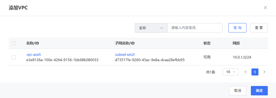 弹窗列表中会展示各VPC子网信息(没有子网的VPC不会展示),用户可以选择需要绑定的子网,支持查询,支持单选与多选;