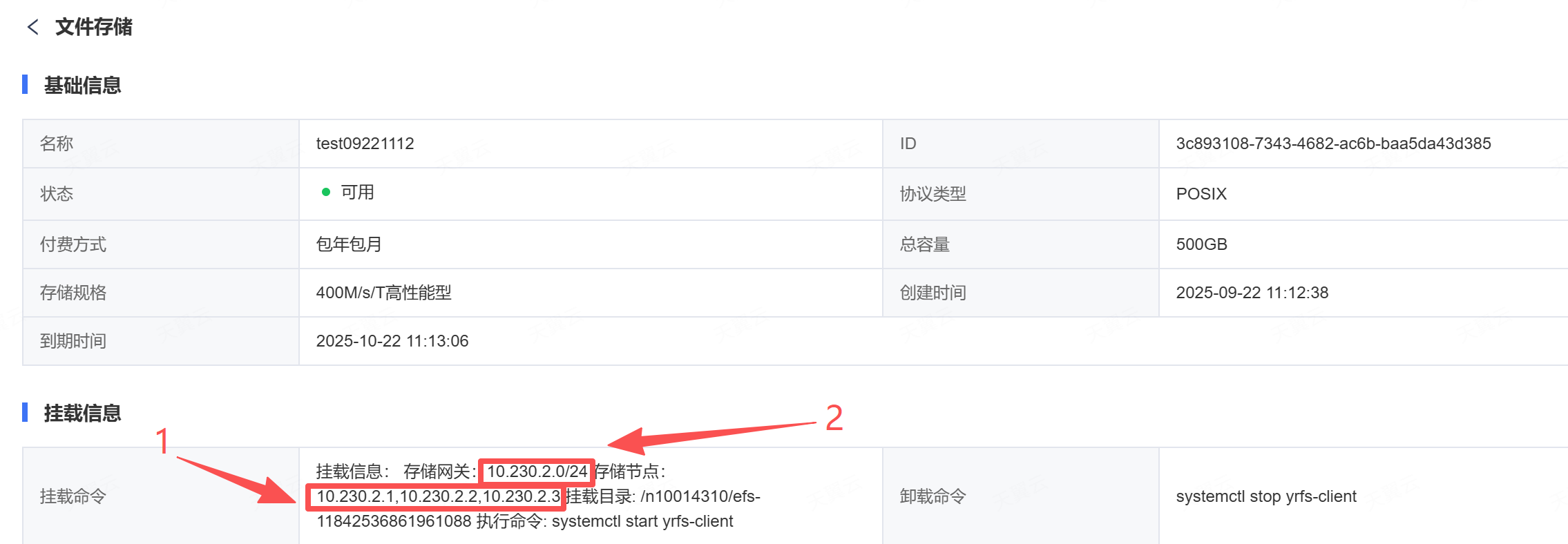 进入并行文件存储详情页面,通过“挂载信息”查看挂载命令中的存储节点信息,可通过ping命令验证机器与存储的网络是否已通,如: