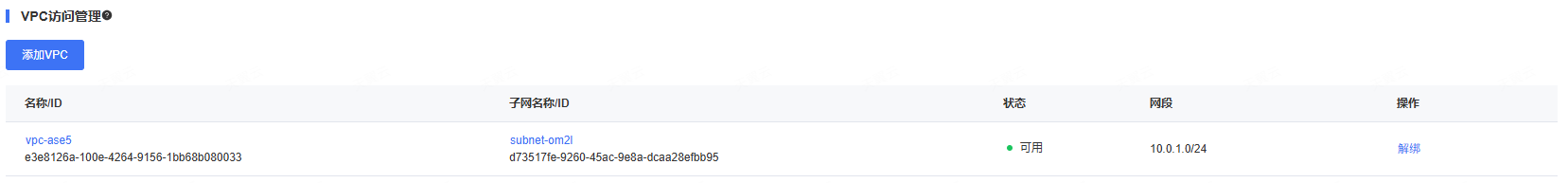创建完并行文件存储之后,可以点击操作列表中-添加VPC弹窗;