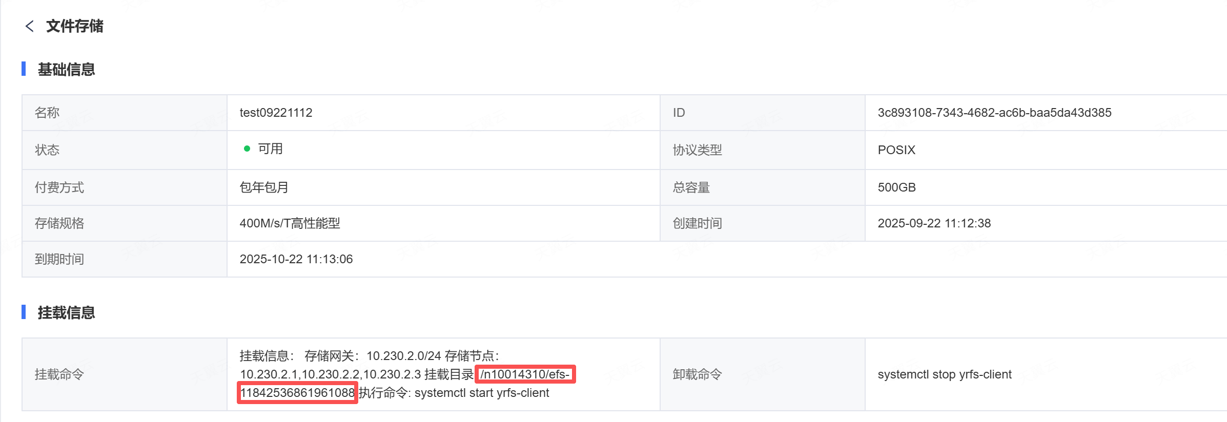 当创建文件存储后,您可以使用云主机、物理机来挂载该文件存储,以实现多个主机共享使用文件存储的目的。