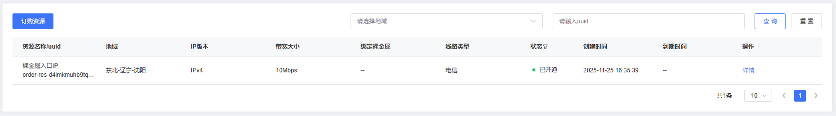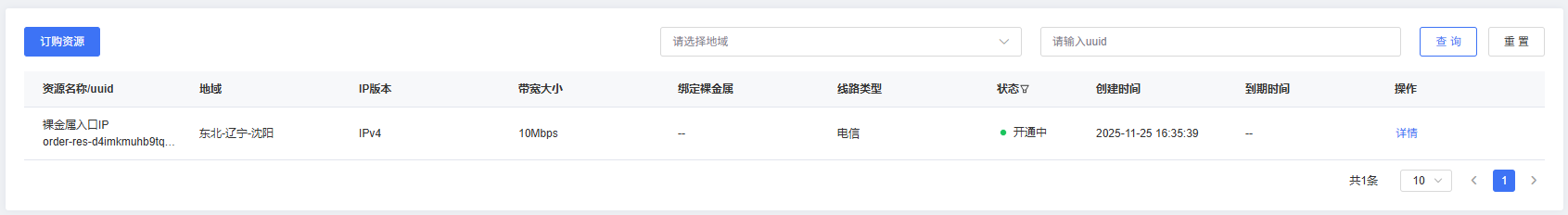 | 绑定裸金属 | 可以选择IP需要绑定的裸金属,非必填。 |
