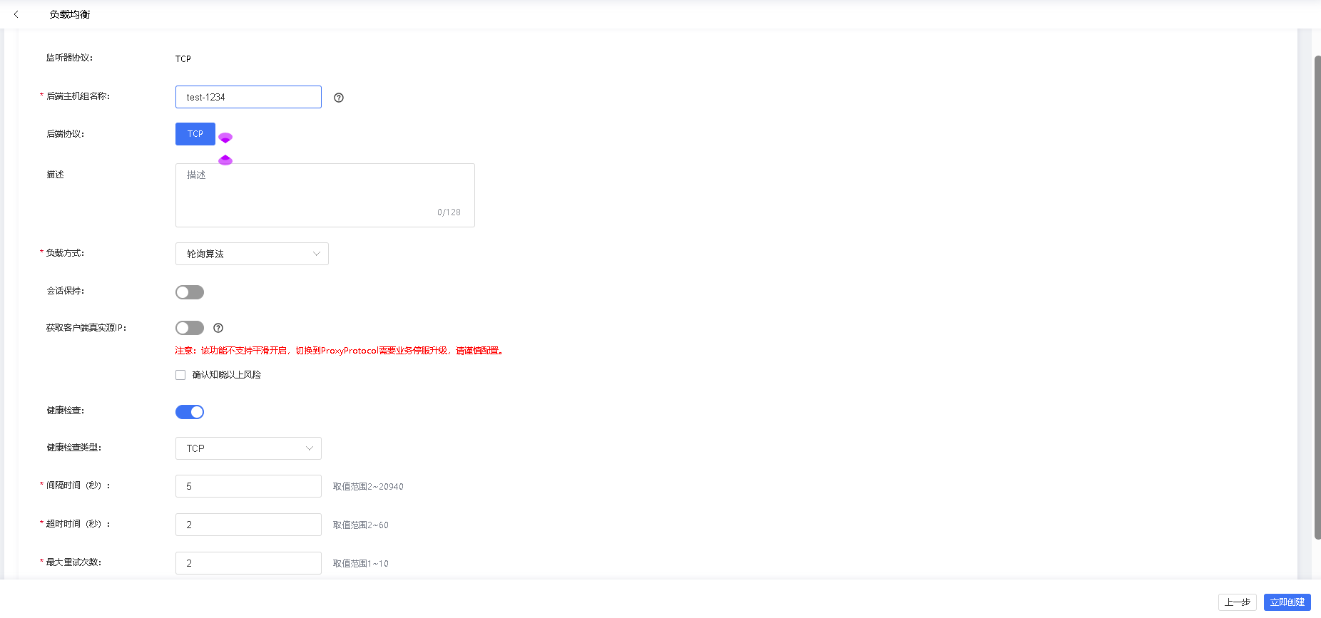 后端主机组名称:填入后端主机组名称,名称无特殊规则,监听器创建的同时自动创建一个空的后端主机组。