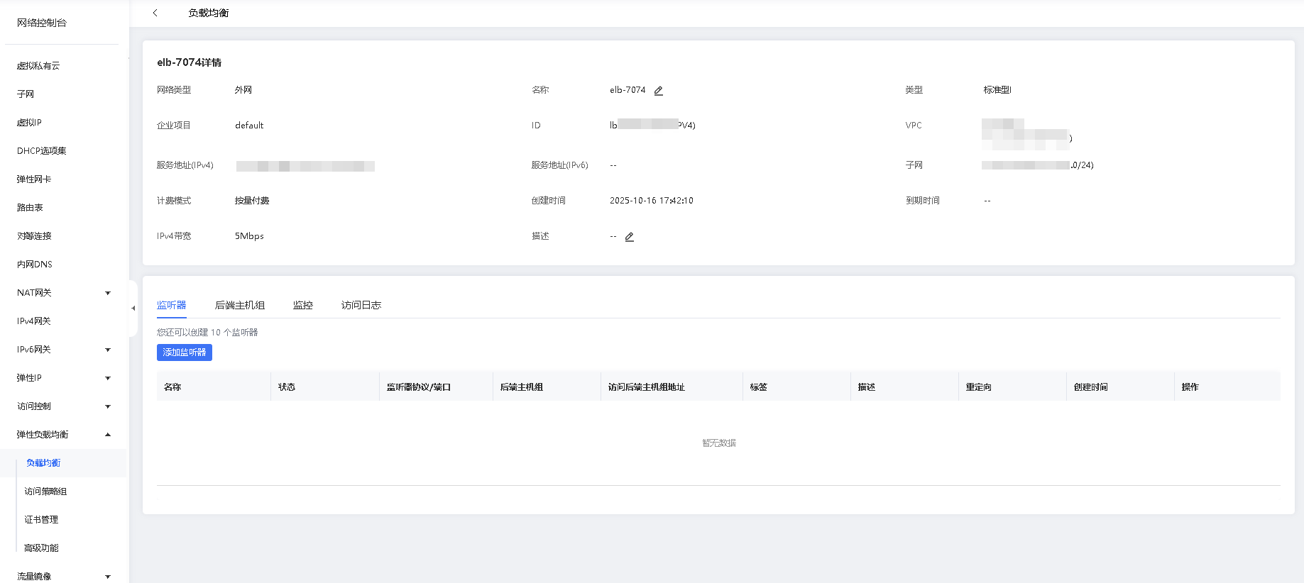 点击“添加监听器”按钮,进入创建监听器的页面。