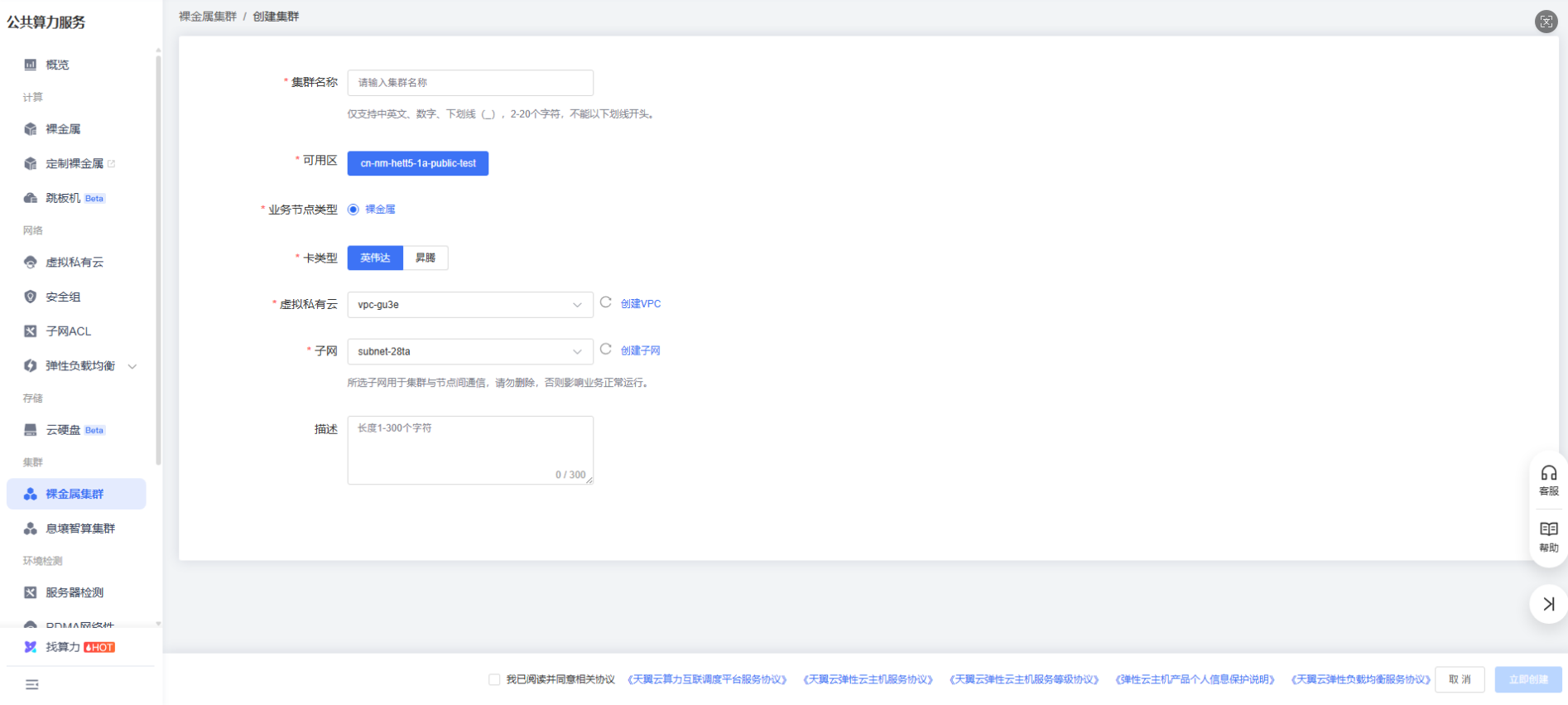 同意并勾选告知,点击【确定】,将自动创建裸金属集